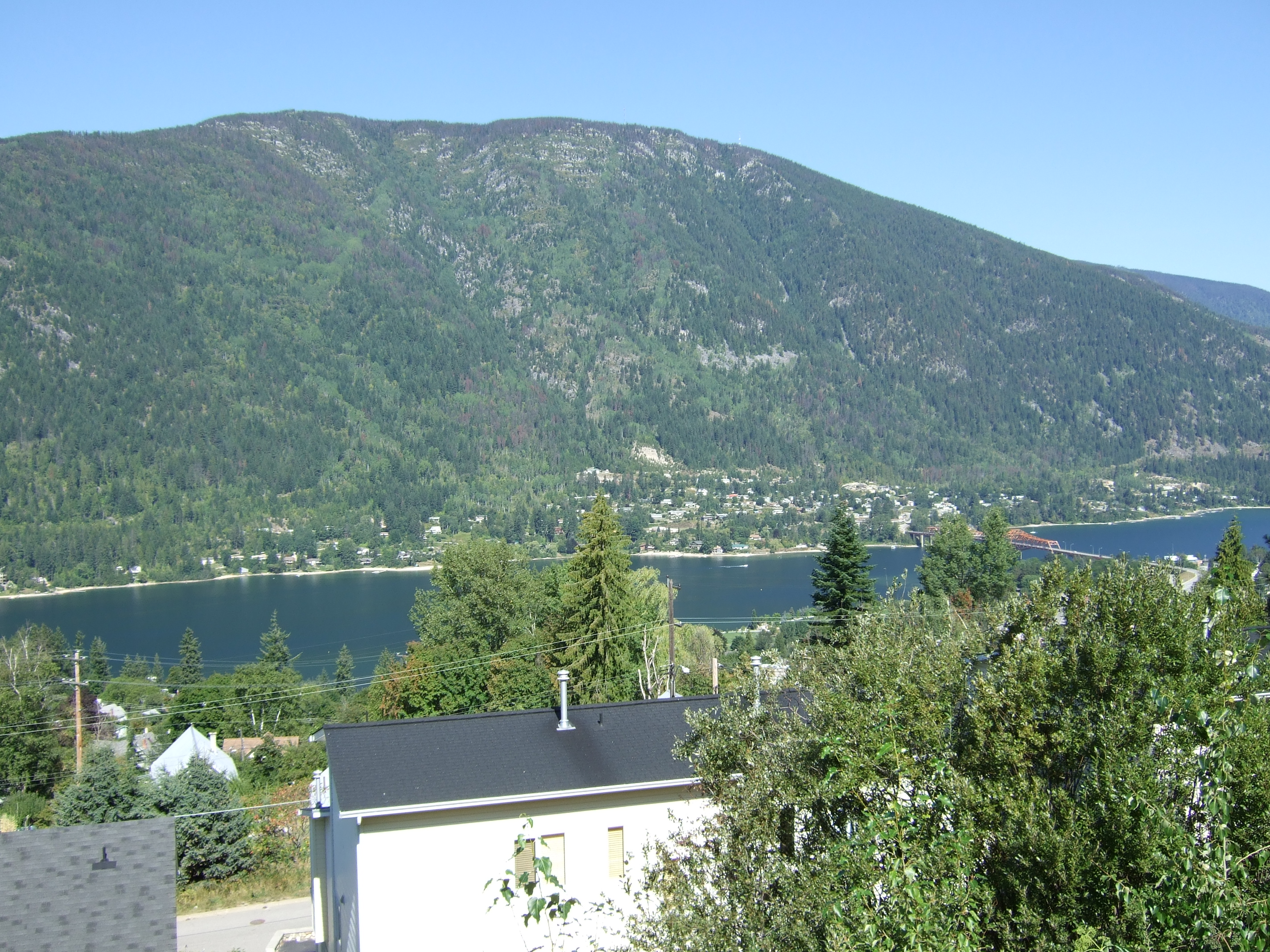 The entire city of Nelson is build on the side of a mountain at the end of the West Arm of Kootenay Lake. Judy and Morris live half way up the mountain, and I decided to walk because I was leery about riding Silver on the steep streets. The only problem was that to get to their home I would have to walk up those steep streets in the 30+ degree heat. No problem, I thought. Well, I underestimated how steep the streets were. After eventually reaching the top I needed about a half hour to catch my breath and cool down. If I lived here, I’d walk up that hill every day and I’d probably be in shape after one week.