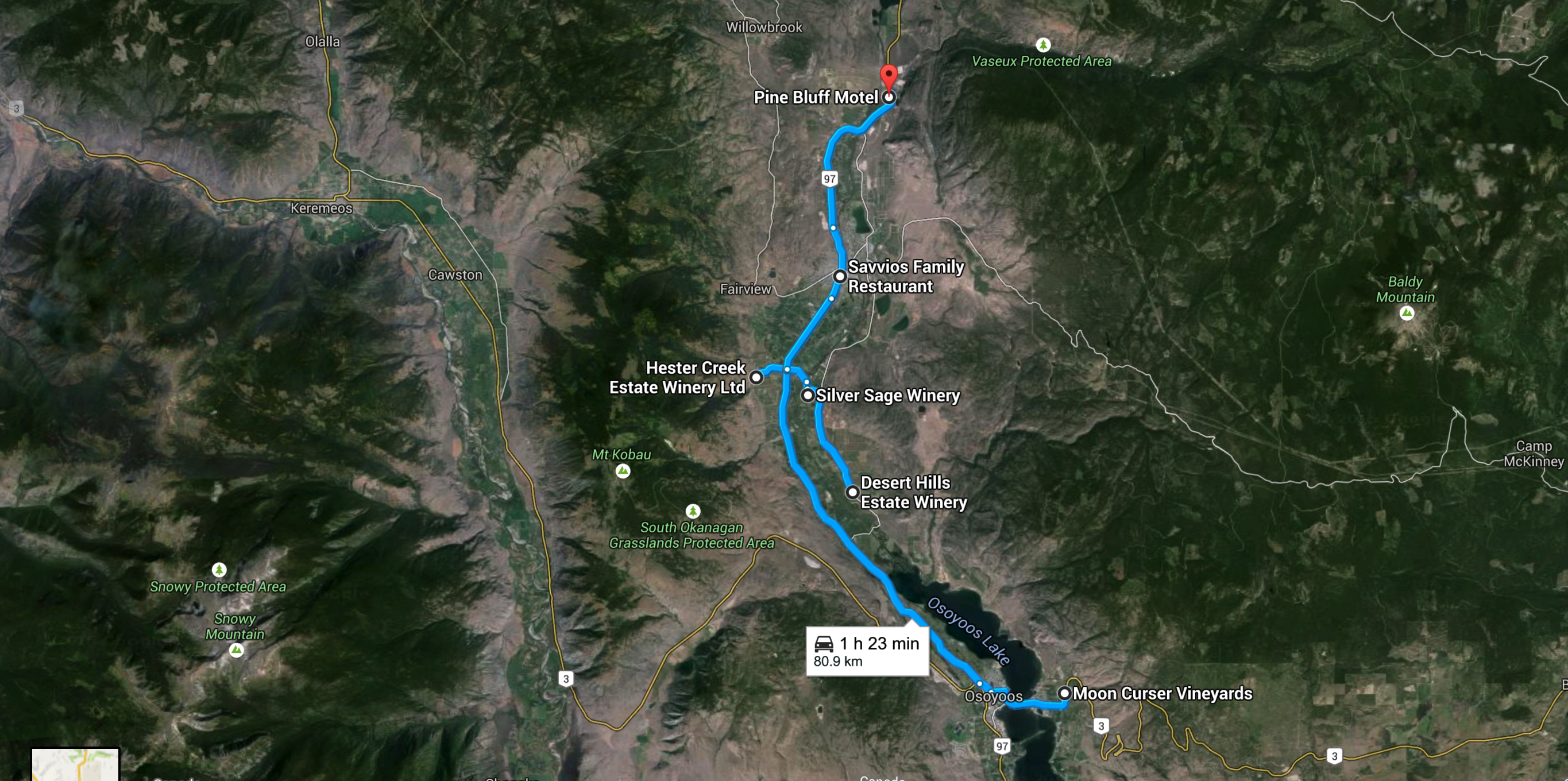 After the day of wine we had a nice dinner at Savvios Greek Restaurant in town. It was an okay place with horrible service. Our hostess greated us with near hostility and our server forgot my meal. Afterward we came back to the motel, visited for a while, and went to bed quite early. Tomorrow would be a long day up to Naramata and back.