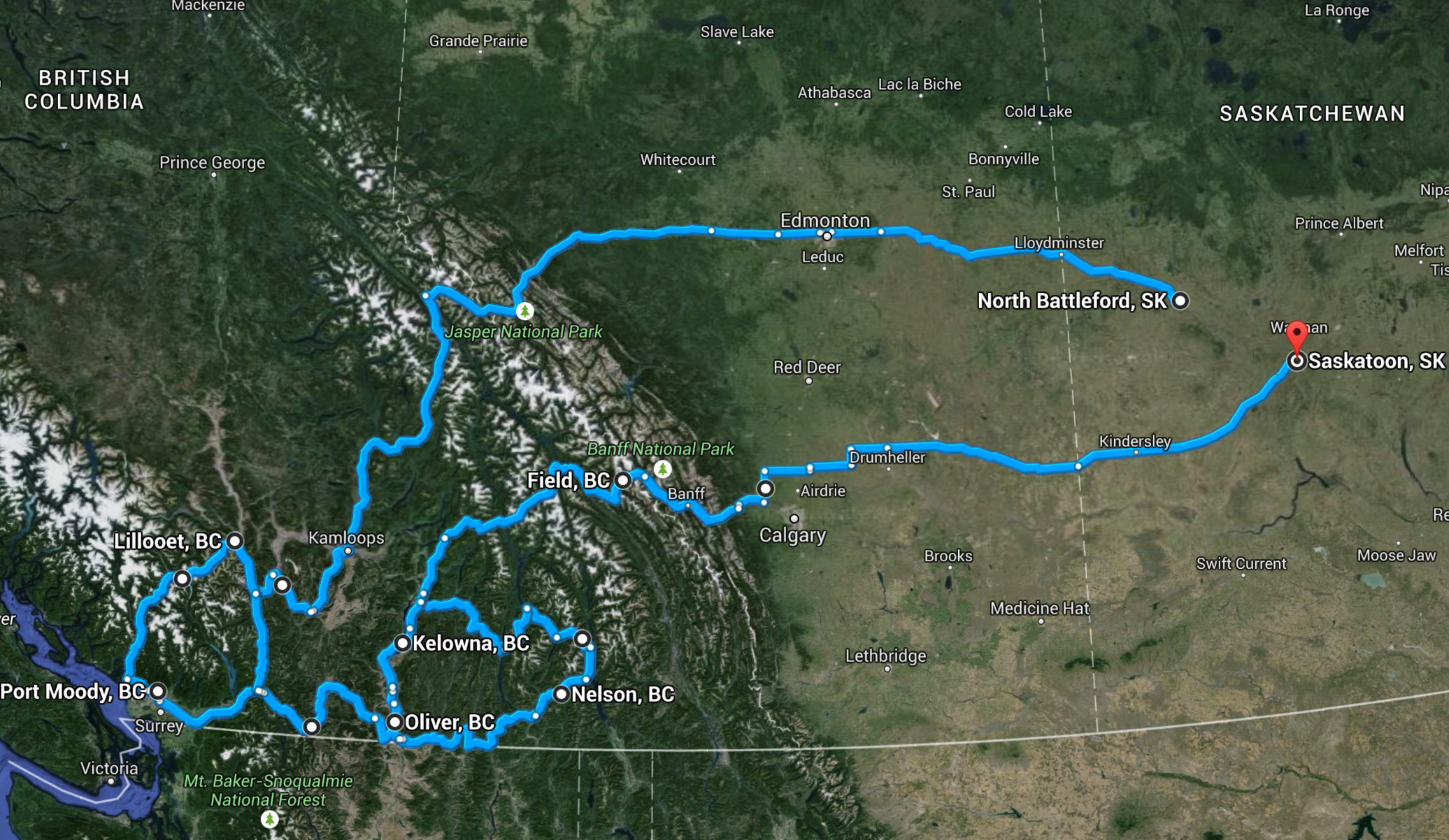 It was also the first tour where I did not discover something new. I had already been throughout southern BC on the three previous tours and this time around I was trying to see as much as I could….but I had seen it all before…look at all of the meandering and circling around on the map below. I think I was trying to see the same places from different angles. In the end I put on about 4300 kms and came home with about 30 bottles of wine.
