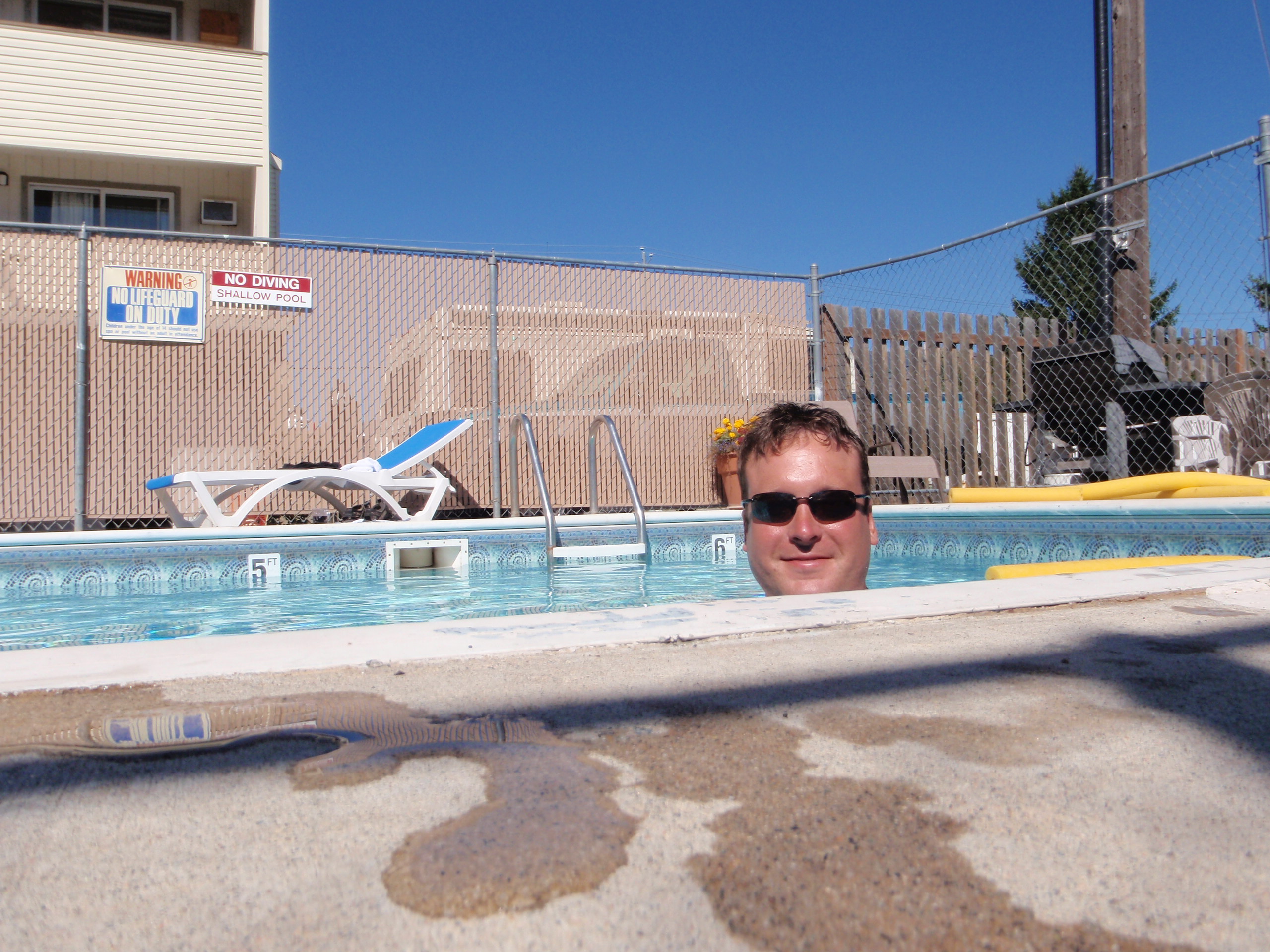 It was now nearly 3:00 and I was in no mood for more wine tasting in the hot sun. I went back to the Cactus Tree Inn, found the pool was abandoned, and took the most obvious course of action. The cool water of the pool was very relaxing despite being under the hot sun with no shade. I spent about two hours just sitting the water reading travel magazines and sipping more wine.