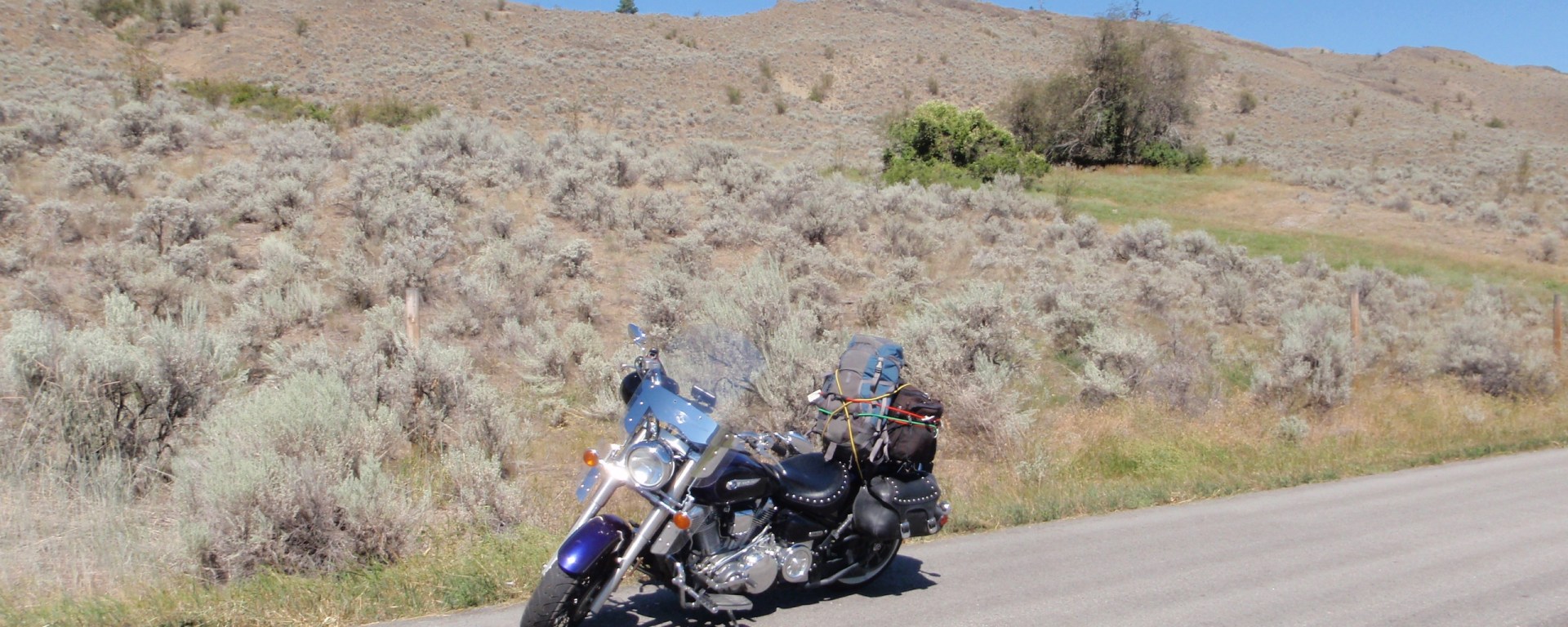 After a classic tour lunch in Oliver (a Subway wrap), I headed west into the heart of the desert so that I could ride on the White Lake road. This is one of my favourite roads because it is far away from any irrigation, development, or tourist traffic. The road itself twists and turns around the small hills of the south Okanagan desert- each of which is peppered with sage bushes and golden sands.