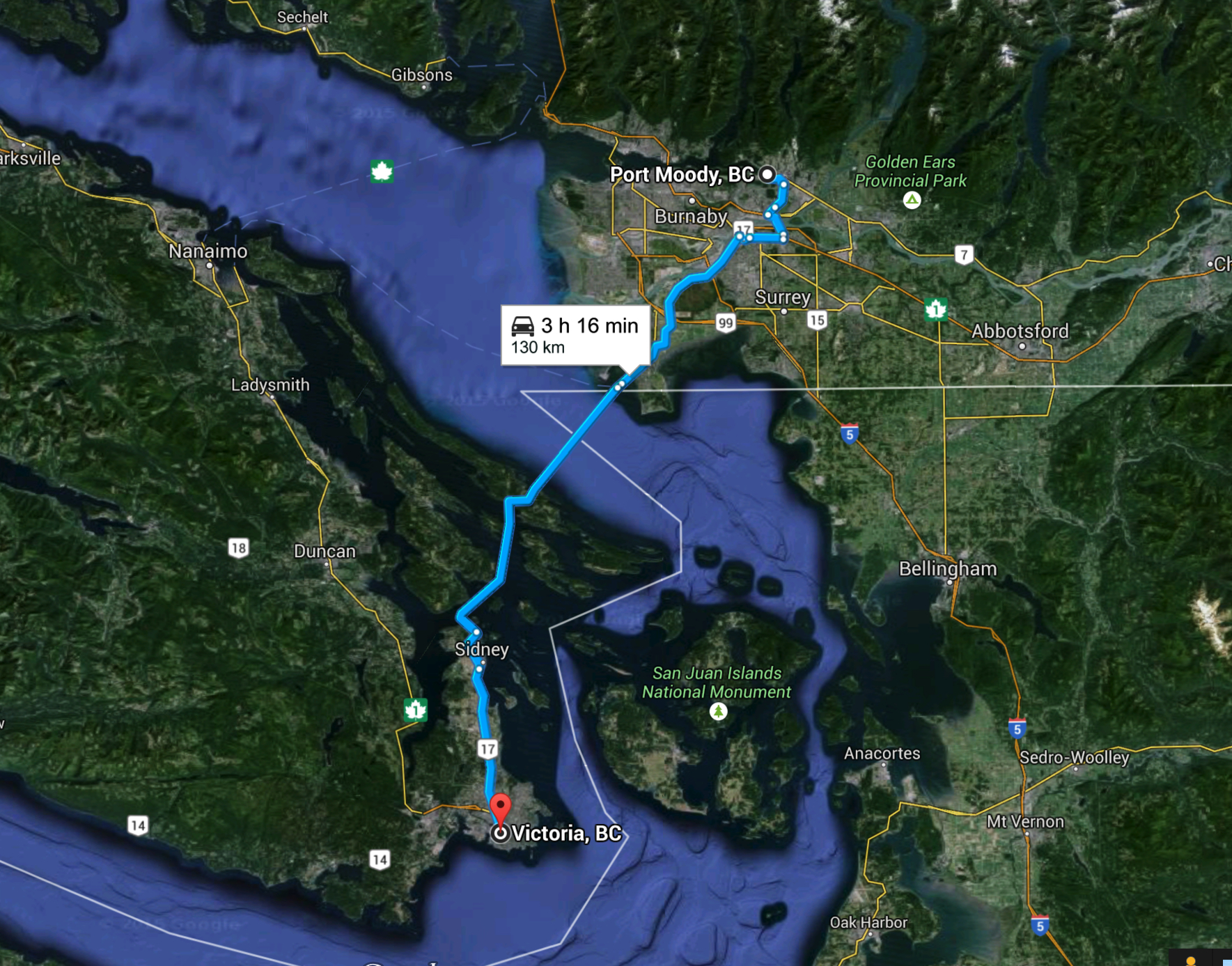 It was just after lunchtime by the time we got back to their place, and after a quick packing of Silver I was ready to head back on the highway. I said goodbye to John and Theresa and headed north toward the ferry at Sidney to take me back to the mainland. My time on the island was about to end.
