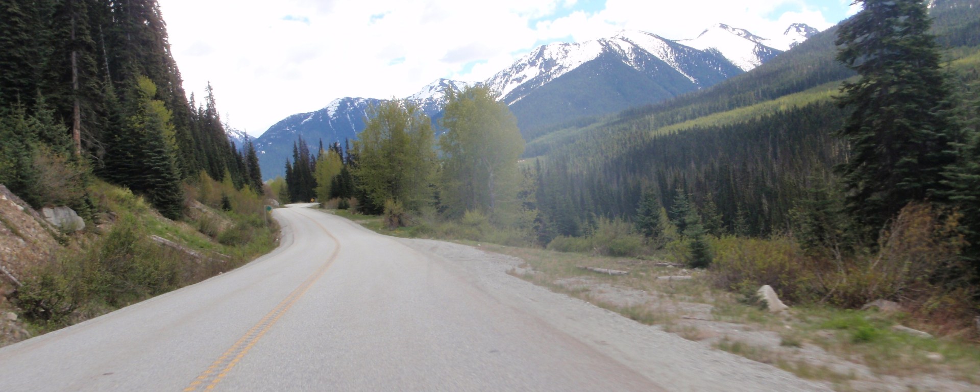 After eating we saddled back up and headed toward Revelstoke. Our goal was to reach Golden for the night but it was getting late, the sun was starting to set, and there were dark clouds forming above us. I wanted to avoid another situation like on Day 1 of the Fellowship of the Road Tour where we rode through Jasper National Park through the rain, the dark, and the cold.
