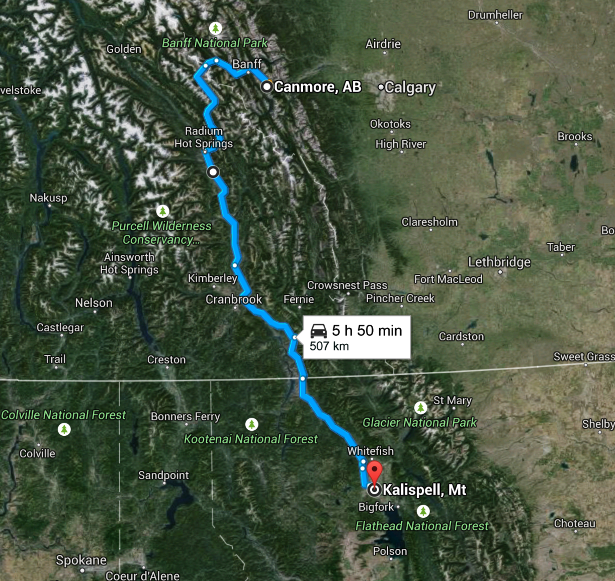 I reached Radium at around 2pm and stopped for a short break where I looked back at the Rockies…they were now to the east of me and I was in the middle of the Rocky Mountain Trench. The Purcells were looming off to the west, but I would not be crossing them for a few days yet. Today I was heading south down the Trench to the United States.
