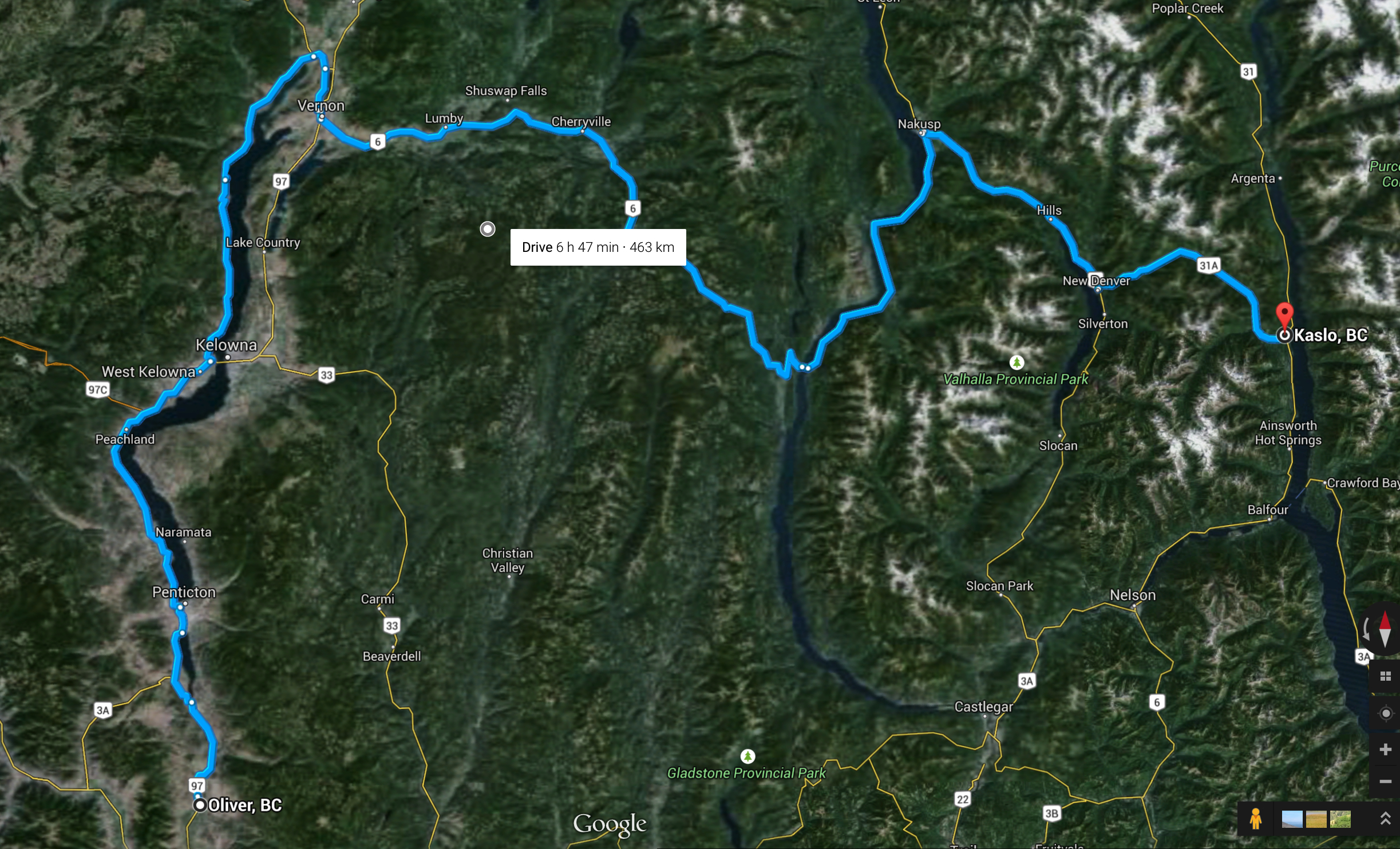 The day was heating up and it was nearly 3 o’clock by the time I got around the northern end of the lake and into Vernon for more fuel and some drinks. I took abit of a break here because this is where I was going to say goodbye to the Okanagan and head in to the Kootenays for an extended stay.