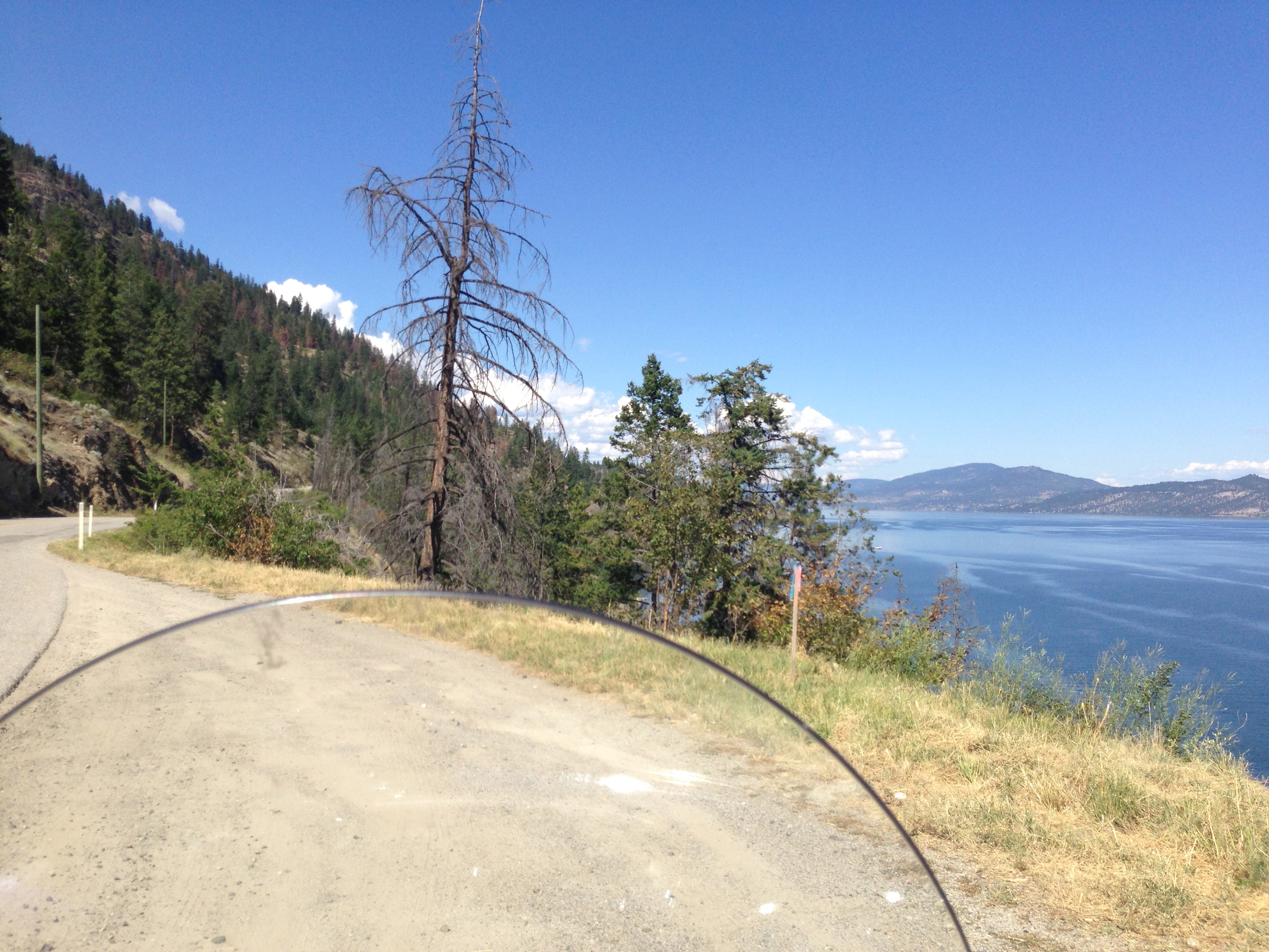 Actually, the West Side road on the westbank of Lake Okanagan is a very cool ride. The road has a lot of esses and curves, very little in the way of guardrails, and towers high above the lake. About halfway up is La Casa Resort where my cousins Lara and Shane got married last summer while I was on the Road Warrior Tour 2012.