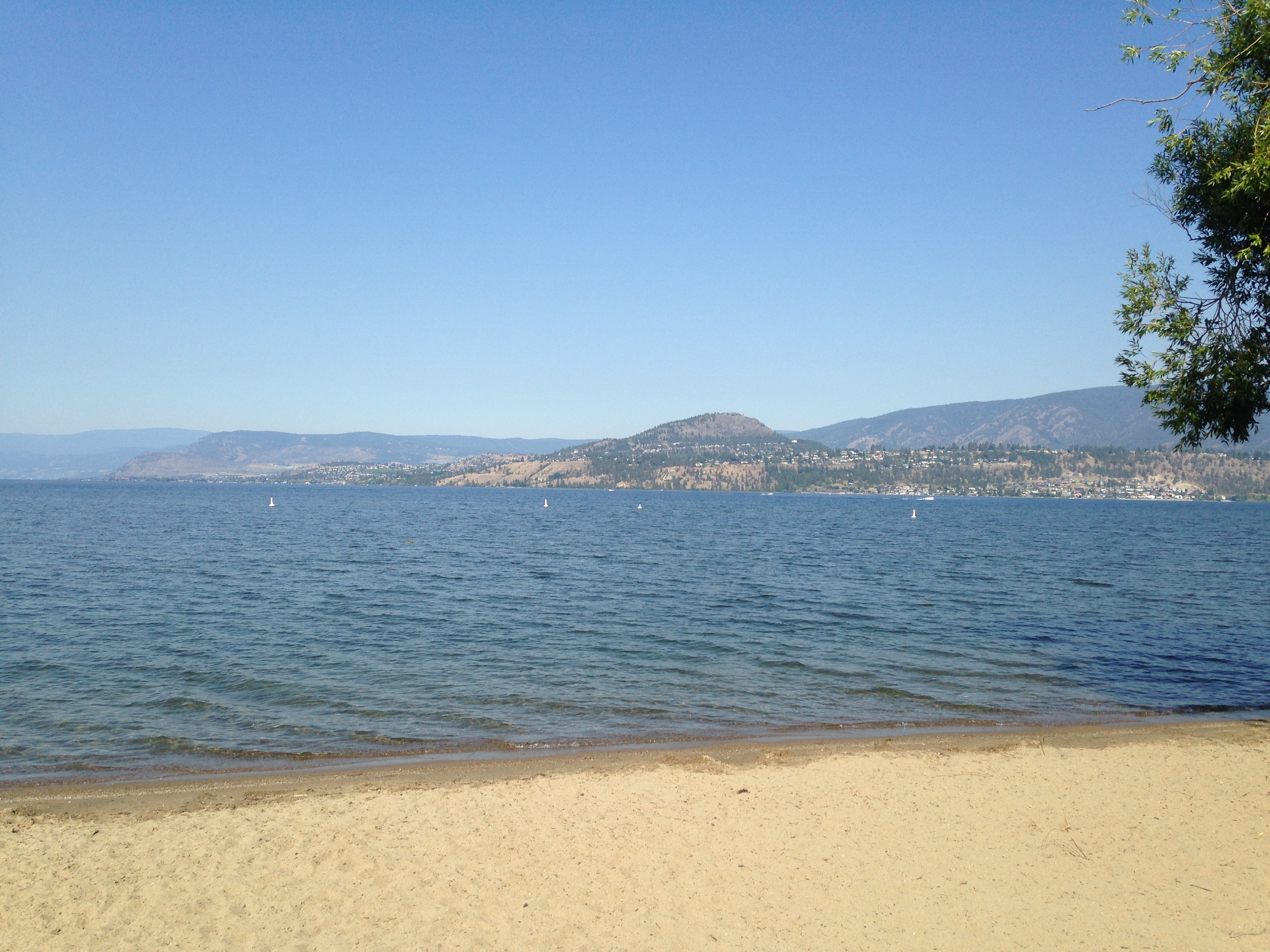 Kelowna never really disappoints in the weather department when I visit. By the time I was done my walk at 9:30 it was already 28 degrees out and sunny. By suppertime the temperature would climb up to 37 degrees again. This presented several problems throughout the day, which includes (but was not limited to) repeatedly sitting on a black leather seat that has been sitting in direct sunlight while wearing shorts, walking into businesses all sweaty from wearing a helmet in the heat, and a strong aversion to red wines.