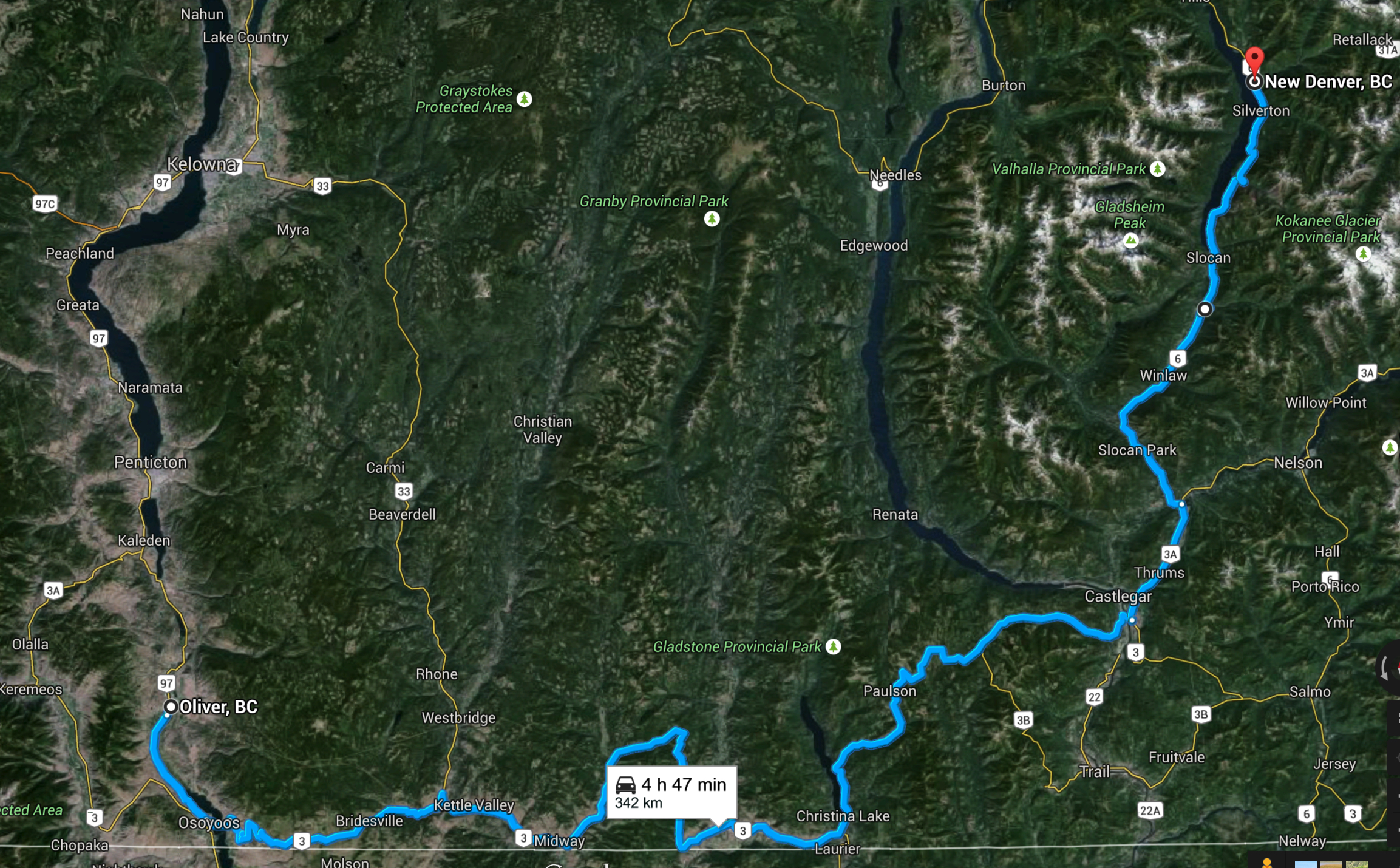After a few hours I reached Grand Forks where I found some escape in the gas station where I fueled up. This was short lived, and it was here that I had to choose where to stay…I left a few “floater” days in there to decide on the fly…and the winner was New Denver. I chose New Denver because it is a) a beautiful little town, and b) they have a lake. Swimming in a cold, glacier fed lake was like a dream right now.
