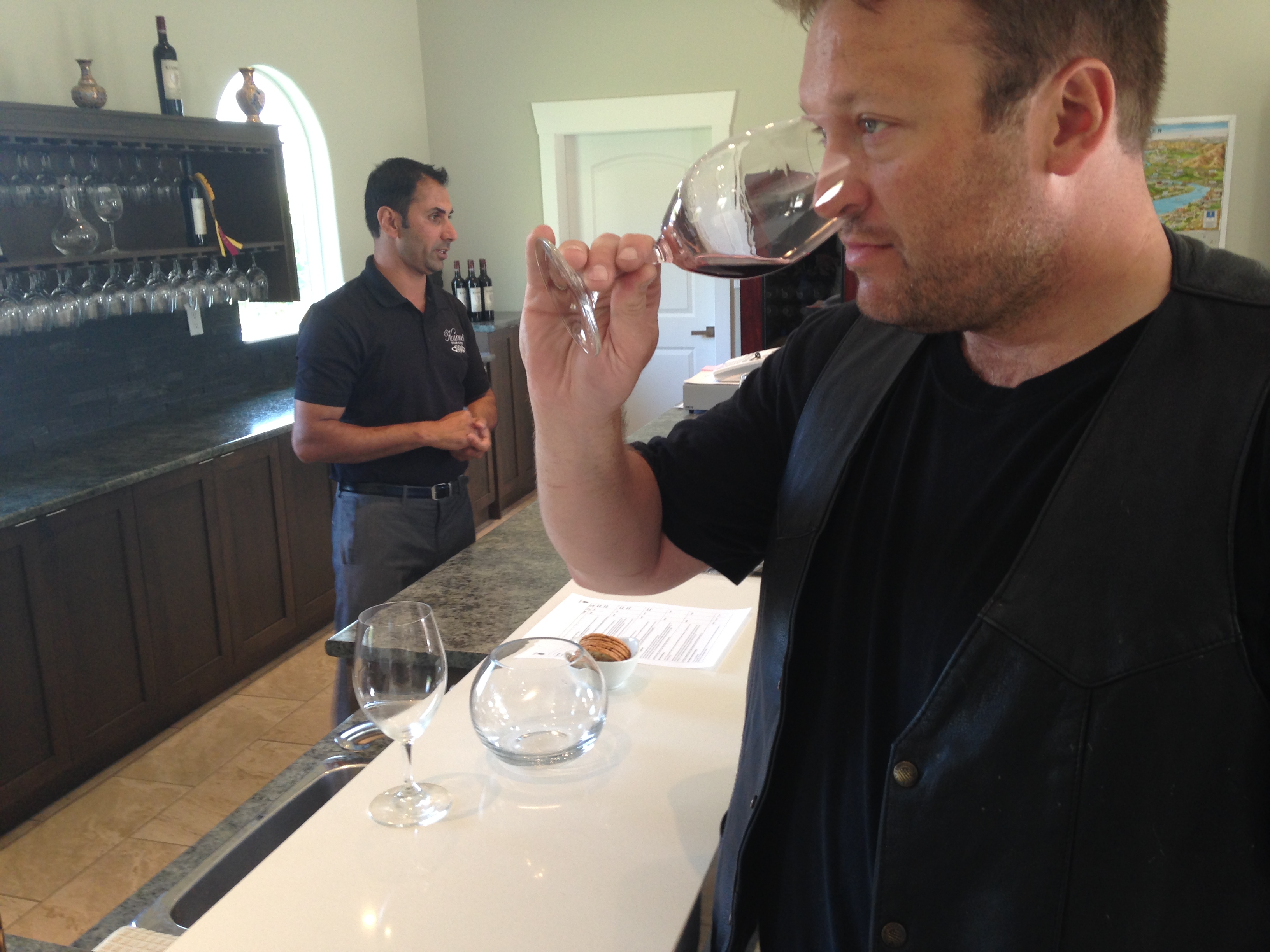 Even as we checked out of the motel I was starting to sweat. I had my jeans and leather vest on as I rode a very packed Silver south out of Oliver. Scott and I had to return our wrong bottles to Gold Hill Winery, and after parking there we decided to visit a few more wineries quickly before we both had to leave. I jumped into Scott’s car because it was air conditioned. It was only 10:00 in the morning.