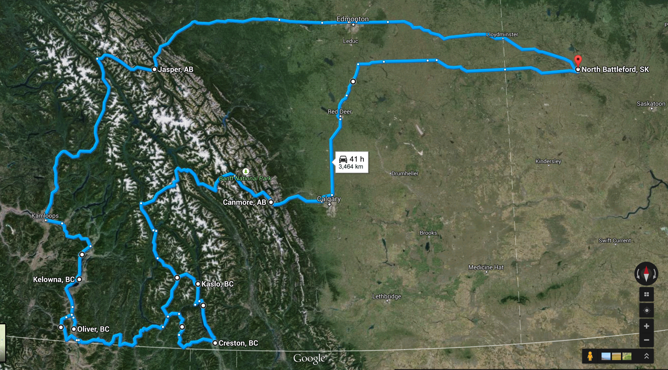 Regardless, it was pretty fast. I left Kaslo and headed north to Revelstoke and then rode the Transcanada Hwy #1 to Canmore where I stayed for the night. The next day I got up early and raced home. I think I was able to get back by 4pm, which is pretty good time since it takes about 8 hours.