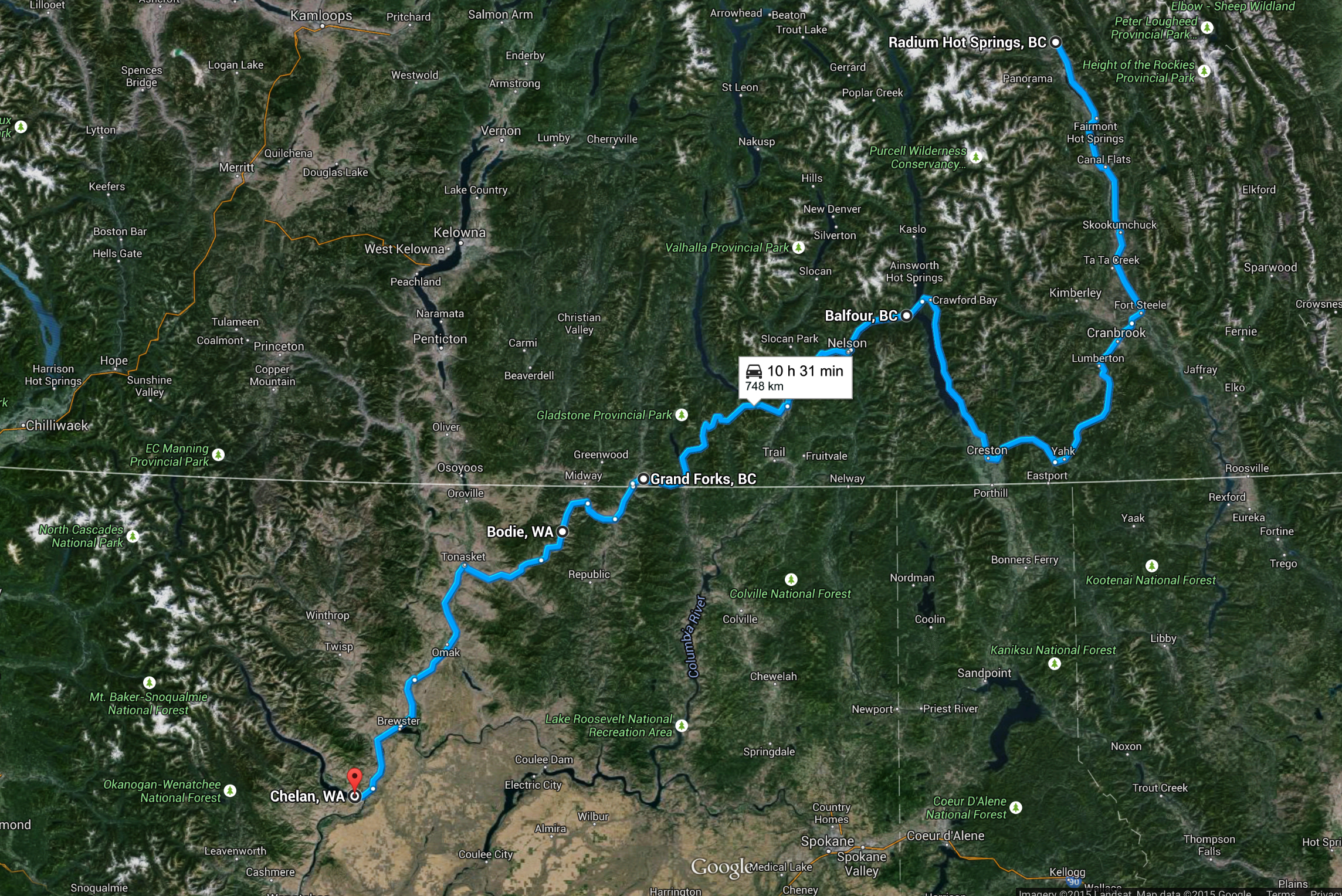 It was after Nelson that the tour became laborious. The hot sun beat down on me as I continued down the Crowsnest to Grand Forks. I crossed over the Columbia River at Castlegar and thought of how I was at Columbia Lake only a few hours ago. During the Crowsnest leg I had to stop a few times to drink water and apply more sunscreen. I was riding west so I was getting full sun all afternoon but I kept pressing on with the vision of jumping in the motel pool at the end of the day. The problem was that Chelan was still over three hours away.